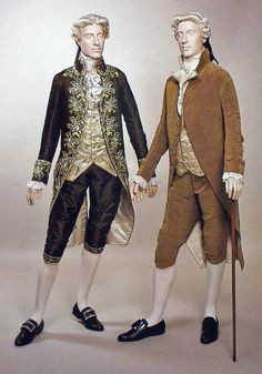 Hombre del siglo XVIII donde destaca la casaca, las medias, los calzones, la peluca y la chupa.