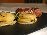 Patatas laminadas al horno con solomillo de buey